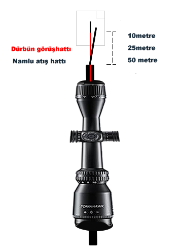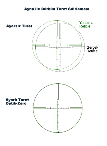 - Göz merceğinden baktığınızda asıl reticle ve aynadan yansıyan gölge reticle göreceksiniz.